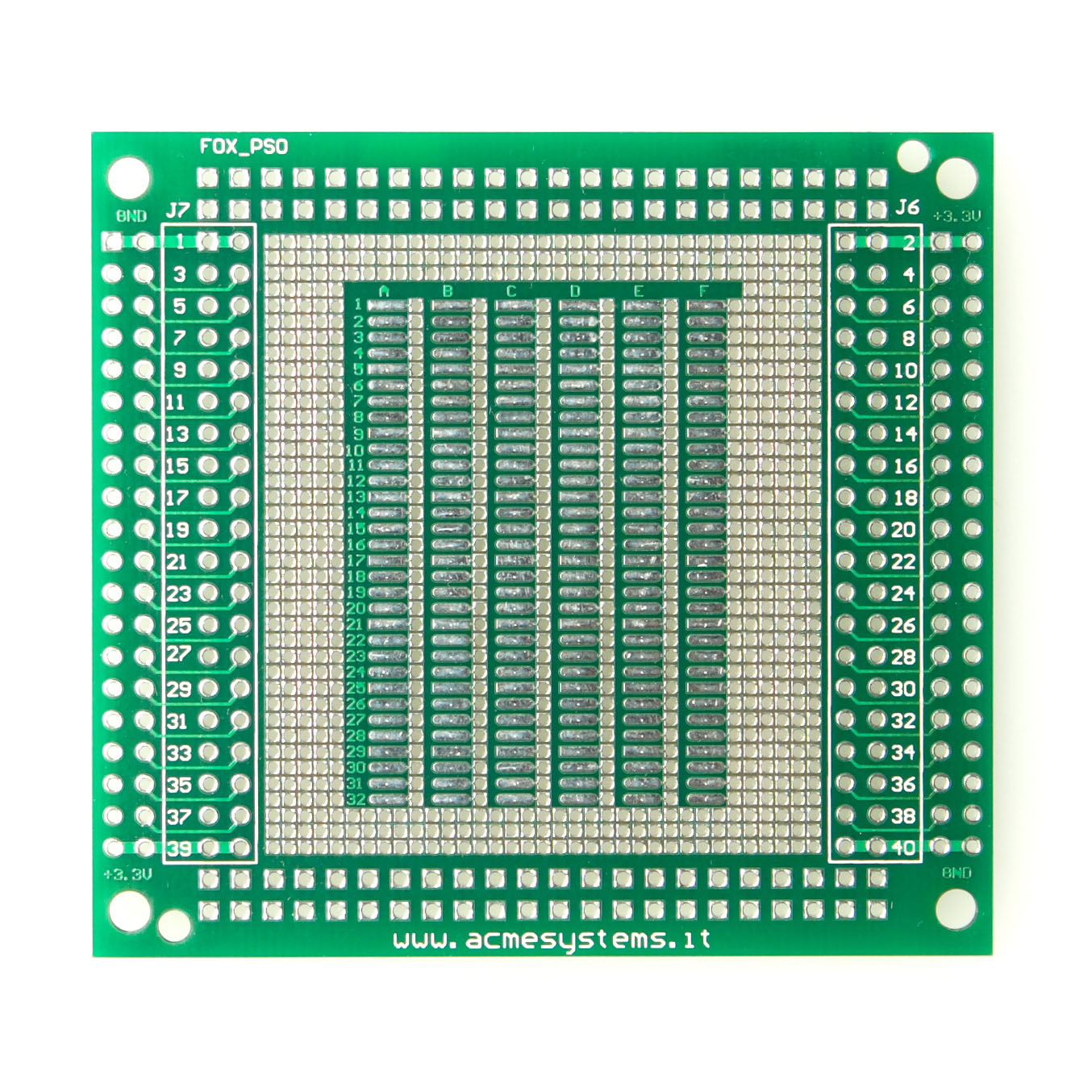 Like the FOXP254 prototyping board, also the FOXPSO has J6/J7 signals replicated inside the
